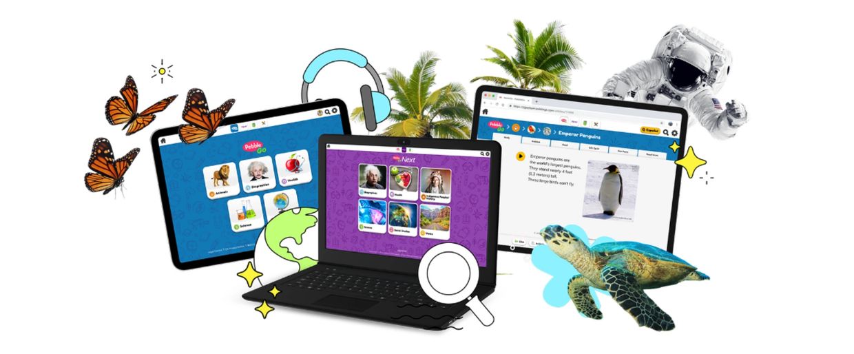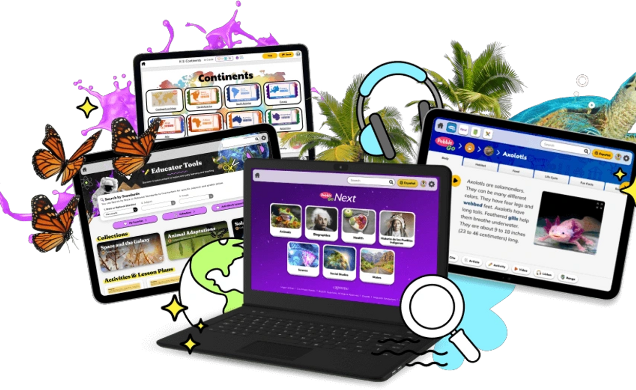 Discover the award-winning PebbleGo suite, trusted by a majority of U.S. elementary schools to enhance background knowledge, promote research and digital literacy skills, and support curriculum goals.